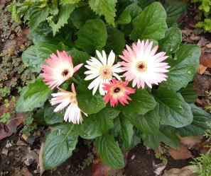 うちの庭のガーベラはついに5輪も花が咲いた。 |