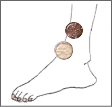 いつものテニスシューズには当たらなかったのだけど、テニスをやっているうちに、2週間後、靴下にこすれて「飛び火」した。 |