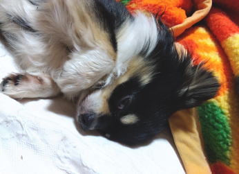 | 夜中に本を読んでいる私の足にお尻をくっつけて眠っている。 |