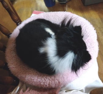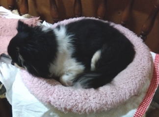 | パソコン仕事の途中で振り返ってみたら、丸くなって寝ていた。 |