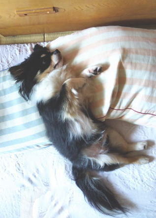 なのでオオカミを祖先に持つ犬、ティラもお尻や背中を飼い主にくっつけて眠ることが多いんだよ。 |