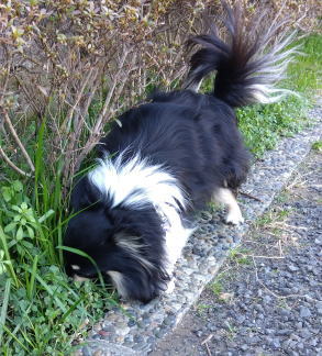 私のそばから離れられなかったのに、ひとりで遊歩道へ冒険に出かけたティラ。うちに来て8年半がたち、外界への不安がなくなってきている。
