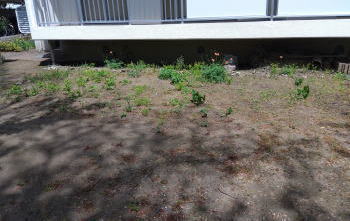 でも庭仕事も草取りも初心者である。どれが雑草で、どれが花なのか、皆目見当がつかないのである。呆然としたけど、とりあえず、雑草とはっきり分かる草からはじめることにした。 |