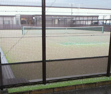 コートの上も雹だらけになってしまった。もうテニスは無理である。