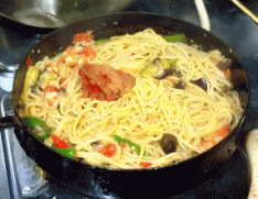 | 茹で上がったパスタを加えて炒める(混ぜる) |