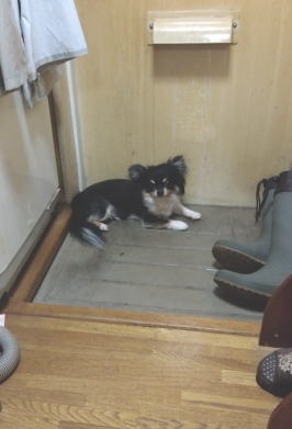 | 玄関で寝そべっているティラに「おいで!」と呼ぶと、トコトコ歩いてくる。大好きなマットに上がって、しばらくはいてくれる。 |