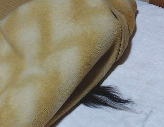 寒い夜のこと。湯たんぽを取りに行ったら、ティラのシッポが見えた。