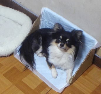 明け方、しっかりトイレにしてあった。「えらいね、えらいね」と思いっきりほめて、ご褒美のおやつを上げた。一安心である。