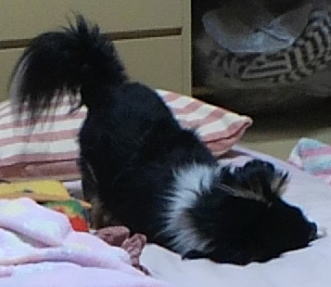 ときには、私のおふとんの上で!・・・でも、我慢・・・、我慢・・・