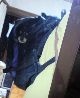 リュックの中から自分でチャックを開けたのである。器用だね~。いつもチャックをかじって遊んでいたから、構造を把握していたのかな。