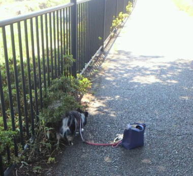 ジーっと向こうを見ている。どうするのかな?と、リードを放して観察したら・・・