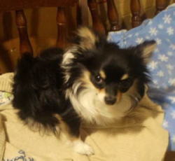 「お坐り」を教えてくれたのは患者さん。待合室のイスの上で、おやつで釣って、「お坐り」をさせ、ついにはおやつなしでもやれるようになった。 |