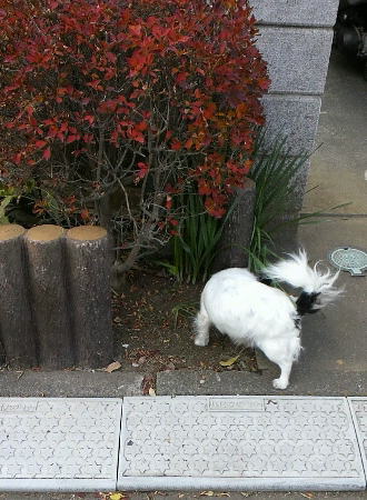 おしっこをしないまま、次に右側に移動。ここでも、クンクン・・・、長々と匂いをかいでる。